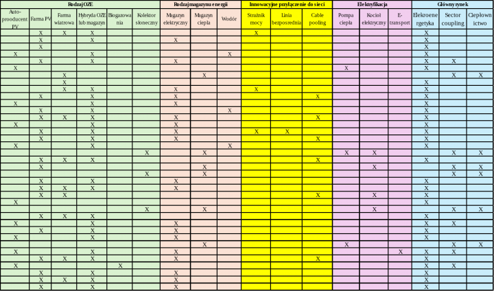 Prace końcowe (studia wykonalności) uwzględniały różne technologie OZE i różne magazyny energii, ale też różne rozwiązania innowacyjne związane z przyłączaniem OZE do sieci, elektryzacja ciepłownictwa i przemysłu itp. Poniższa tabela pokazuje zakres prac końcowych z lat 2023-2025.