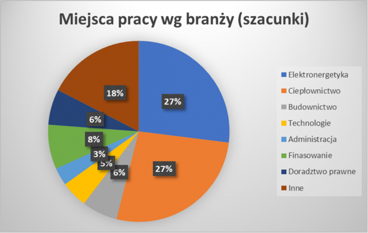 Studia są miejscem, gdzie można spotkać ekspertów i osoby z różnych obszarów co służy wymianie informacji i debacie eksperckiej nad różnymi ścieżkami transformacji energetycznej. Poszerzaniu horyzontów i podejmowaniu tematów interdyscyplinarnych sprzyja różnorodność zawodowa studentów, w tym aktualne miejsca pracy (biznes OZE, firmy elektroenergetyczne i ciepłownicze, instytucje banków i finansowe, przedstawiciele samorządów, kancelarie prawne itp.). Na wykresie przedstawiano podział studentów ostatniej edycji z uwagi na obszary działalności ich firm.
