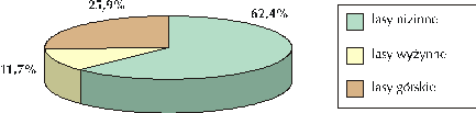 Lasy nizinne stanowią 62,4%, wyżynne - 11,7%. a górskie - 25,9% powierzchni.